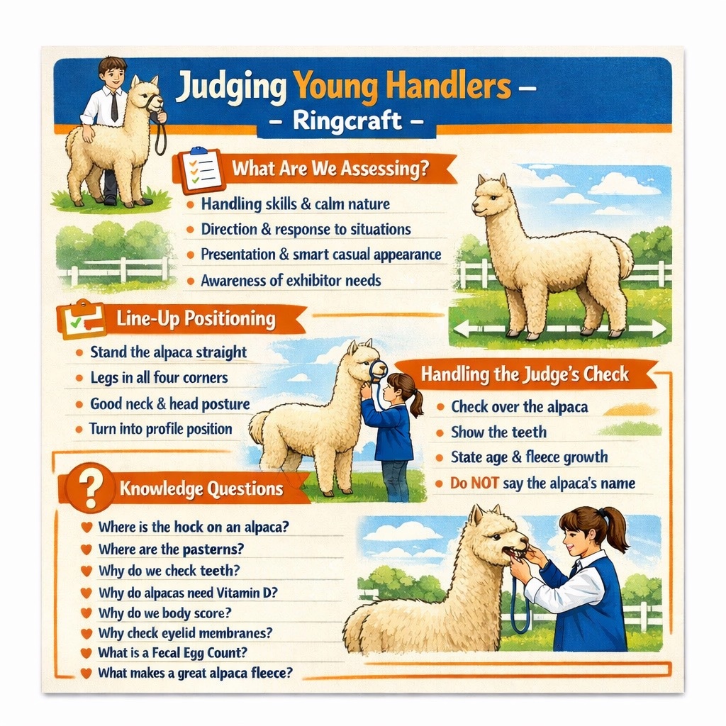 We are hoping to increase entries for the Young Handlers Competition, so if you know any young alpaca enthusiasts who would enjoy taking part, please encourage them to enter.