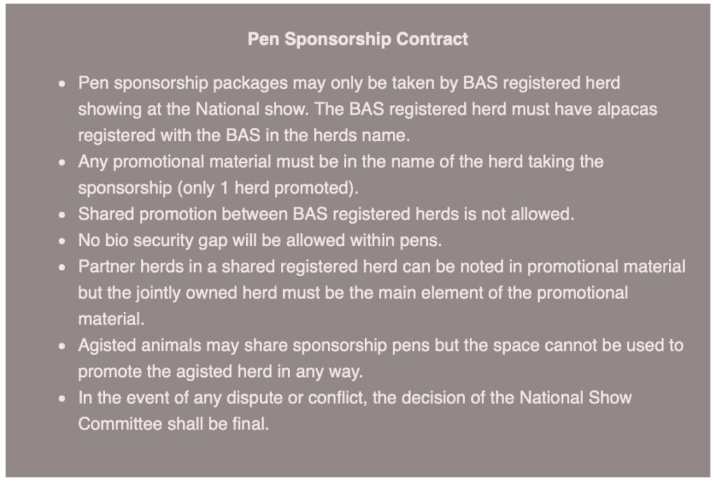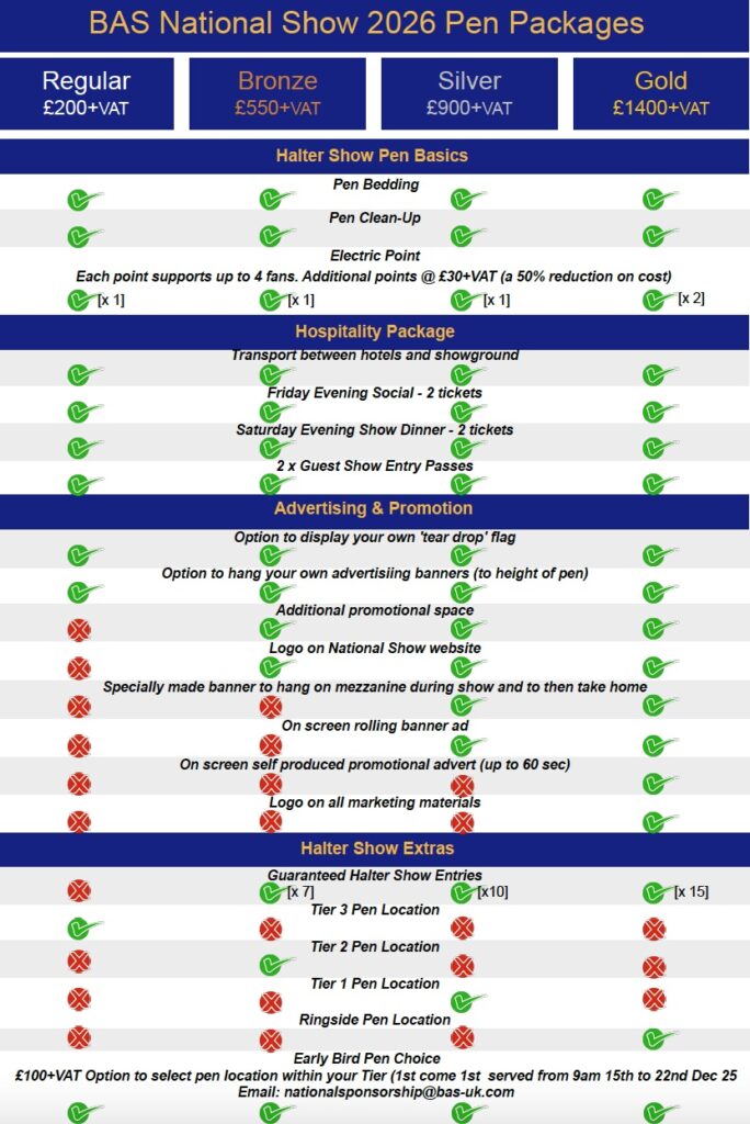 If you would like to secure a Bronze, Silver or Gold sponsor pen, please email nationalshowsponsorship@bas-uk.com by 8/12/25.